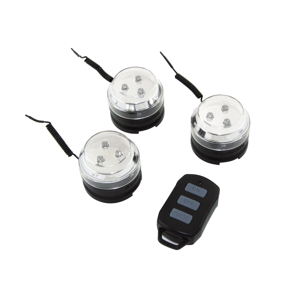 Κάθε σετ περιέχει τρια αδιάβροχα φωτιστικά, τα οποία μπορούν να δεθούν πάνω σε διάφορα αντικείμενα με ιμάντες velcro (περιέχονται).