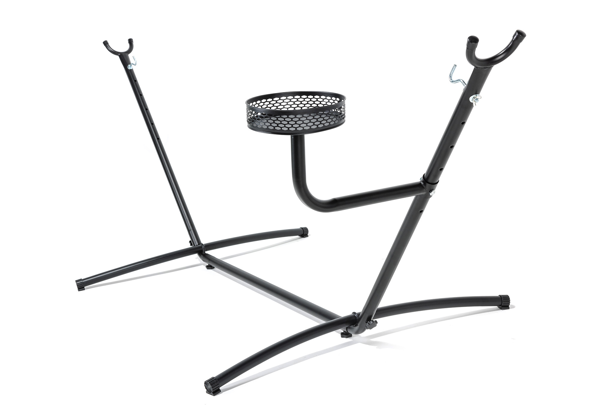 Βάση αιώρας Escape, εύκολα συναρμολογούμενη χωρίς ανάγκη εργαλείων. Κατασκευασμένη από ατσάλι βαριάς κατασκευής. Προσαρμόστε τους διάφορους τύπους αιώρας αλλάζοντας θέση στον γάντζο. Κρατήστε κοντά σας τα προσωπικά σας αντικείμενα, ή το ποτό σας, τοποθετώντας τα στο καλαθάκι δίπλα σας.