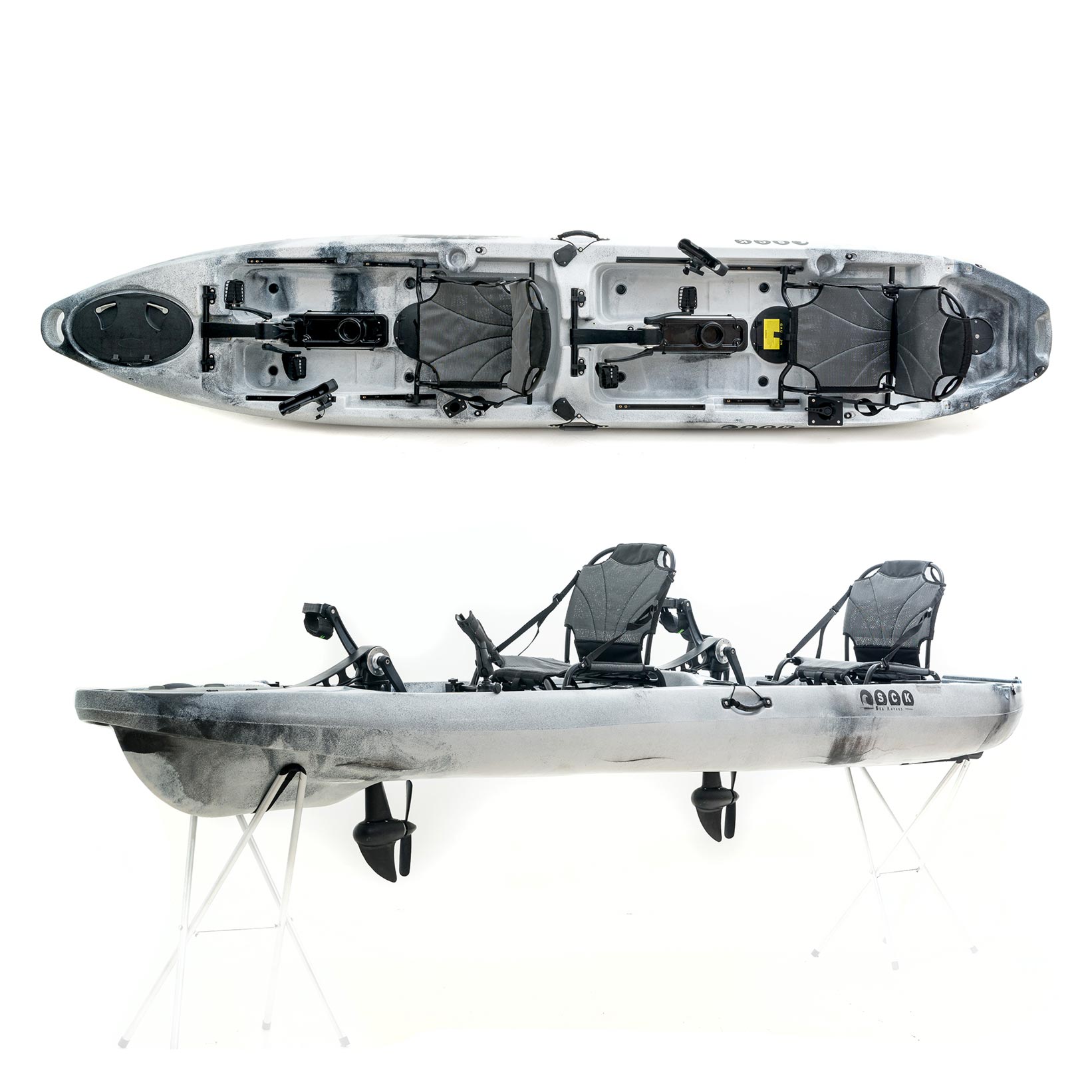 Το διθέσιο ποδηλατικό καγιάκ είναι μία επιλογή για ένα συνειδητοποιημένο ζευγάρι (στη ζωή, στο ψάρεμα, στο νερό…). Ένα ζευγάρι που αναζητά την απόλυτη ηρεμία και ανεξαρτησία στο ψάρεμα.