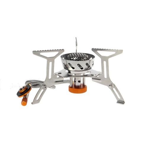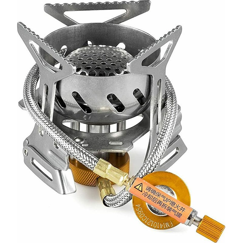 Εστία μαγειρέματος με αντιανεμικό σχεδιασμό και κατασκευή από ατσάλι, με μεγάλη βάση για να είναι πιο σταθερή.