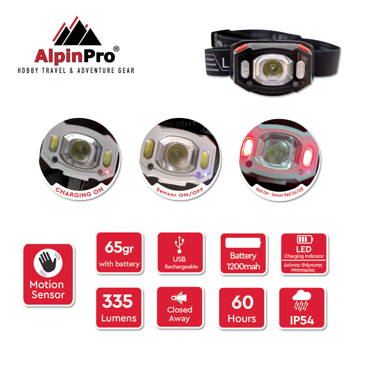 Αισθητήρας με dimer στο κύριο LED για να επιλέγετε εσείς την φωτεινότητα που θέλετε. (100%-10%)