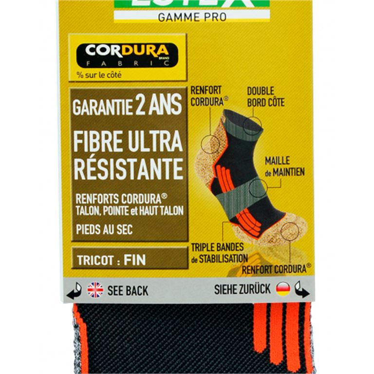 Η κάλτσα αυτή είναι σχεδιασμένη για παπούτσια ασφαλείας. Λεπτή και ελαφρια ndash; Καλύπτει τον σφυρό. Στήριγμα Cordurareg; στη φτέρνα και τα δάχτυλα των ποδιών. Πολύ ανθεκτική στην τριβή. Πιστοποιημένο STANDARD 100 από την OEKO-TEXreg;Ndeg; 1105067.0, CENTROCOT Ενισχυμένη στα δάκτυλα και φτέρνα Cordura: Είναι ενα ανθεκτικό και αξιόπιστο. Προσφέρει μεγάλη διάρκεια ζωής, αντοχή στα σκισίματα, γδαρσίματα και τριβή. Διπλή νεύρωση για στήριξη χωρίς να συσφίγγει το πόδι. Αναπνεύσιμη σόλα από λεπτό πολυαμίδιο HDreg;. Τριπλές λωρίδες σταθεροποίησης για τα περιμετρικά στηρίγματα. Σύνθεση: 85% polyamide 12% polypropylene 3% elastane Διαθέσιμα Μεγέθη: 35-37 38-40 41-43 44-46