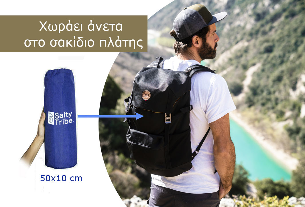 Το πτυσσόμενο κρεβάτι Sidians της Salty Tribe θα μετατρέψει το κάμπινγκ σας σε μια πολυτελή, υπαίθρια εμπειρία! Χάρη στο πλαίσιο από κράμα αλουμινίου και τους ισχυρούς συνδέσμους PVC, αυτό το κρεβάτι είναι αρκετά ανθεκτικό για να αντέχει βάρος χρήστη έως και 150 κιλά. Είναι πολύ δύσκολο να βρείτε κάποια υπαίθρια δραστηριότητα όπου αυτό το κρεβάτι δεν θα σας βόλευε. Είναι τόσο μικρό σε μέγεθος όταν είναι κλειστό, εξαιρετικά ελαφρύ και εύκολο στη χρήση, που το καθιστά ιδανικό για διάφορες υπαίθριες δραστηριότητες όπως πεζοπορία, καγιάκ, ποδηλασία, αναρρίχηση, ορειβασία, ψάρεμα, αλλά και στα ταξίδια.Χρήση στο σπίτι:Τι θα λέγατε να το χρησιμοποιήσετε στο σπίτι; Σίγουρα ναι, αυτό το κρεβάτι είναι εξαιρετικό χρήσιμο όταν έχετε ξαφνικά καλεσμένους που θα διανυκτερεύσουν τη νύχτα, για τον ύπνο των παιδιών σας, ή για να το βάζετε στο δωμάτιό σας όταν το παιδί σας θέλει να κοιμηθεί με τους γονείς του.Τοποθέτηση σε σκηνή:Με ύψος μόνο 15 cm και λόγω του μεγέθους του, το κρεβάτι Sidians μπορεί να χωρέσει ακόμα και στις πιο χαμηλές σκηνές, για παράδειγμα, τις σκηνές όπως η σκηνή BLADE PRO.Οδηγίες εγκατάστασης:1. Τοποθετήστε το ύφασμα στο έδαφος.2. Ανοίξτε τους δύο εγκάρσιους σωλήνες (cross bars) και τοποθετήστε τους στις οπές του υφάσματος.3. Ανοίξτε τις ράβδους στήριξης. Στερεώστε τις δύο πλευρές μιας ράβδου στις οπές των αγωγού των εγκάρσιων σωλήνων.4. Επαναλάβετε τη διαδικασία για τις υπόλοιπες ράβδους στήριξης.Συμβουλή: Τοποθετήστε πρώτα τη μεσαία ράβδο στήριξης και μετά τις υπόλοιπες, αυτό θα διευκολύνει την τοποθέτηση και των υπολοίπων.Χαρακτηριστικά: Υλικό υφάσματος: Αδιάβροχο ύφασμα Oxford Υλικό πλαισίου: Ανθεκτικό κράμα αλουμινίου Μέγεθος κρεβατιού: 67x188x15 cm Μέγεθος συσκευασίας: 50×10 cm Χρώμα: Μπλε Βάρος: 2.4 κιλά Μέγιστο βάρος χρήστη έως 120 κιλά Περιεχόμενο συσκευασίας:1 x υφασμάτινο κάλυμμα2 x Cross Bars5 x Ράβδοι στήριξης1 x τσάντα μεταφοράς