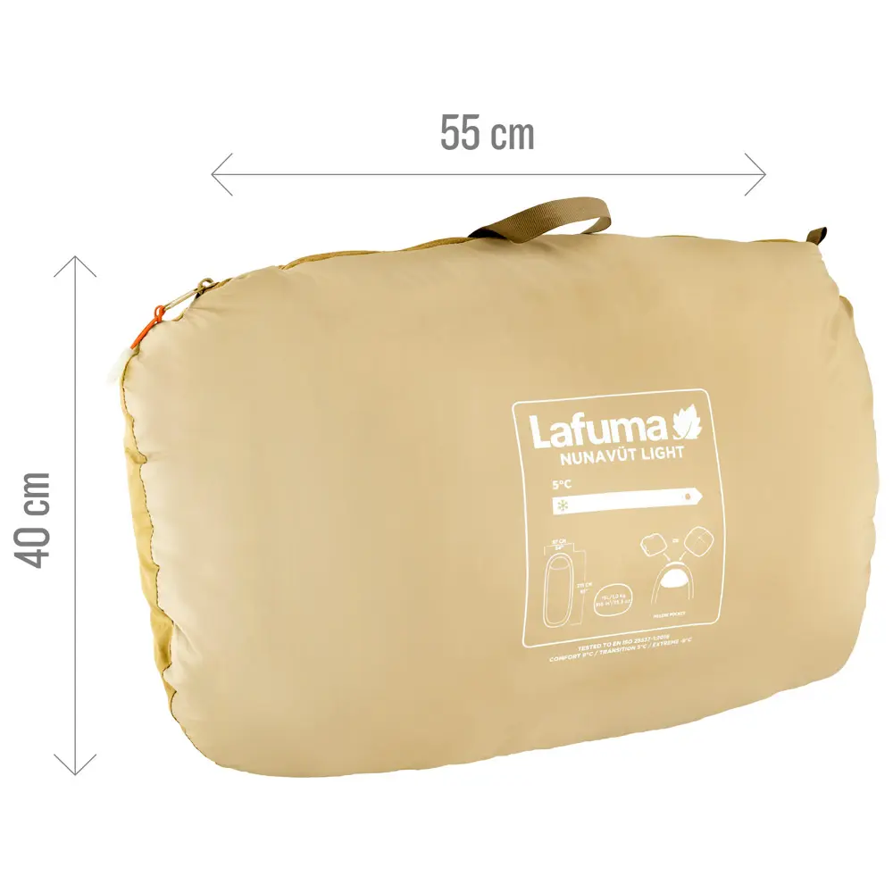 Ο υπνόσακος Lafuma Nunavut Light έχει σχεδιαστεί για εκείνους που αναζητούν άνεση και πρακτικότητα κατά τις υπαίθριες εξορμήσεις τους. Ιδανικός για κάμπινγκ την άνοιξη και το καλοκαίρι, συνδυάζει οικολογικά υλικά με λειτουργικά χαρακτηριστικά. Είτε ξεκινάτε μια πεζοπορία είτε απολαμβάνετε μια σαββατιάτικη απόδραση, αυτός ο υπνόσακος εξασφαλίζει έναν ήρεμο ύπνο κάτω από τα αστέρια. Κύρια Χαρακτηριστικά: Οικολογική Μόνωση: Γέμιση από ίνες ανακυκλωμένου πολυεστέρα ReLOFT®, προσφέρει ζεστασιά και μειώνει τον περιβαλλοντικό αντίκτυπο. Ελαφρύς Σχεδιασμός: Ζυγίζει μόνο 1 κιλό, διευκολύνοντας τη μεταφορά σε όλες τις περιπέτειές σας. Άνετη Εφαρμογή: Ορθογώνιο σχήμα με διαστάσεις 215 εκ. σε μήκος και 87 εκ. σε πλάτος ώμων, κατάλληλο για χρήστες έως 190 εκ. ύψος. Θερμοκρασίες Χρήσης: Άνετος σε θερμοκρασίες μεταξύ 5°C και 9°C, με ακραία θερμοκρασία -9°C. Λειτουργικά Χαρακτηριστικά: Περιλαμβάνει φερμουάρ διπλής κατεύθυνσης με φωσφορίζοντες δείκτες, εσωτερική προστατευτική φάσα κατά του κρύου, θήκη για μαξιλάρι και εσωτερική τσέπη για τα απαραίτητα. Εύκολη Αποθήκευση: Έρχεται με σακίδιο συμπίεσης (όγκος 15L) για βολική συσκευασία και μεταφορά. Τεχνικές Προδιαγραφές: Φερμουάρ: Αριστερή Πλευρά Υλικό: Πολυεστέρας 50D 300T (100% Πολυεστέρας) Μόνωση: Ίνες ανακυκλωμένου πολυεστέρα ReLOFT® Φερμουάρ: Διπλής κατεύθυνσης με φωσφορίζοντες κωδικούς Θερμοκρασίες: Comfort: 9°C, Limit: 5°C, Extreme: -9°C Διαστάσεις: Μήκος: 215 εκ., Πλάτος ώμων: 87 εκ. Βάρος: 1 κιλό Ύψος χρήστη: Έως 190 εκ. Μέγεθος σακιδίου συμπίεσης: 55 x 40 εκ. Όγκος: 15 λίτρα
