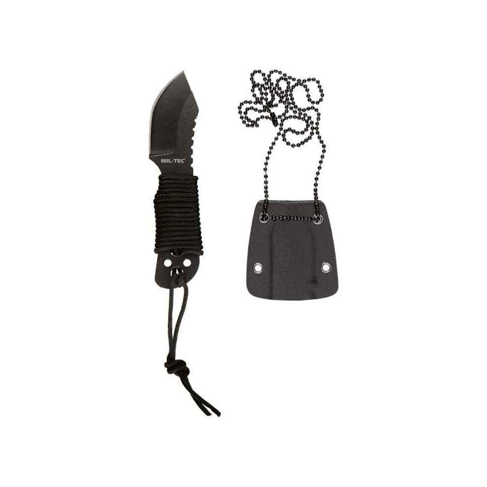Μαχαίρι Επιβίωσης Mil-Tec Paracord Neck 9cm ιδανικό για εργασίες γενικής χρήσης όπως η κοπή σχοινιών, το άνοιγμα συσκευασιών ή ελαφριές εργασίες όπως το άναμμα φωτιάς και η προετοιμασία φαγητού.