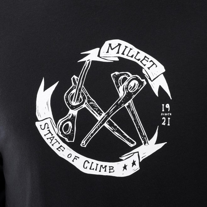 Αυτό το υπέροχο μπλουζάκι με μακριά μανίκια θα ευχαριστήσει όλους τους θαυμαστές, με τον αρχικό σχεδιασμό του να δείχνει το Millet M μπροστά.