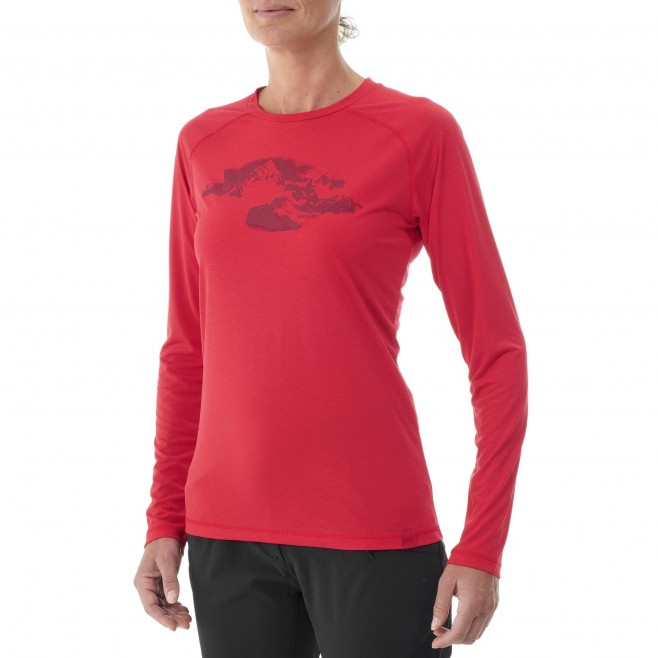 Διακοσμημένο με ένα υπέροχο μοτίβο εμπνευσμένο από το βουνό, αυτό το μπλουζάκι πεζοπορίας είναι εξοπλισμένο με μανίκια “ραγκλάν” με επίπεδη ραφή που αποτρέπουν την τριβή στα σακίδια.