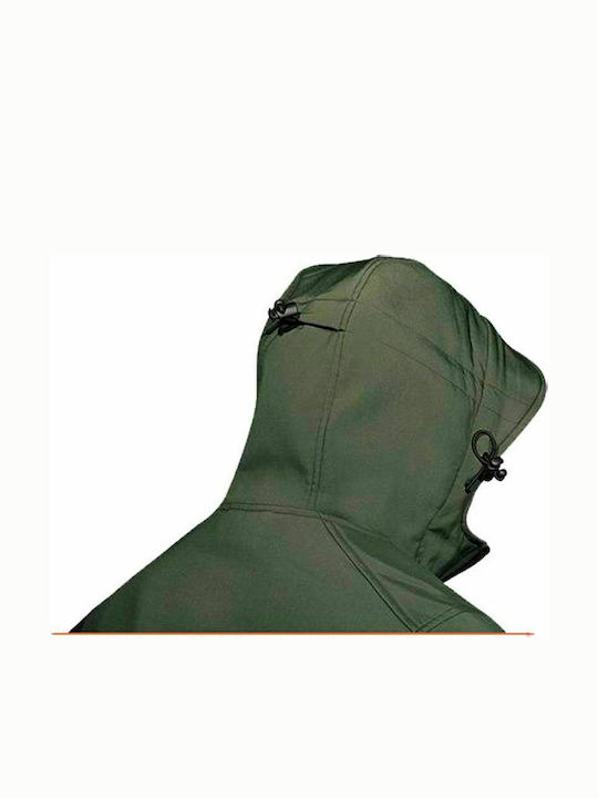 Μπουφάν Soft Shell με κουκούλα, αντοχή στο πιτσίλισμα και αντιανεμική. Έχει εξωτερικά 3 τσέπες, 2 πλαϊνές τσέπες που ασφαλίζουν με φερμουάρ και 1 τσέπη στήθους. Διαθέτει εξωτερική κουκούλα με επένδυση microfleece η οποία ρυθμίζεται με κορδόνια σύσφιξης. Διαθέτει κεντρικό φερμουάρ αδιάβροχο που κλείνει από τη μέση έως και το λαιμό, επίσης διαθέτει προστασία πηγουνιού κατά το κλείσιμο του φερμουάρ. Τα μανίκια του διαθέτουν ασφάλιση με velcro για να το ρυθμίζεται όπως εσείς θέλετε κατάλληλα στον καρπό.