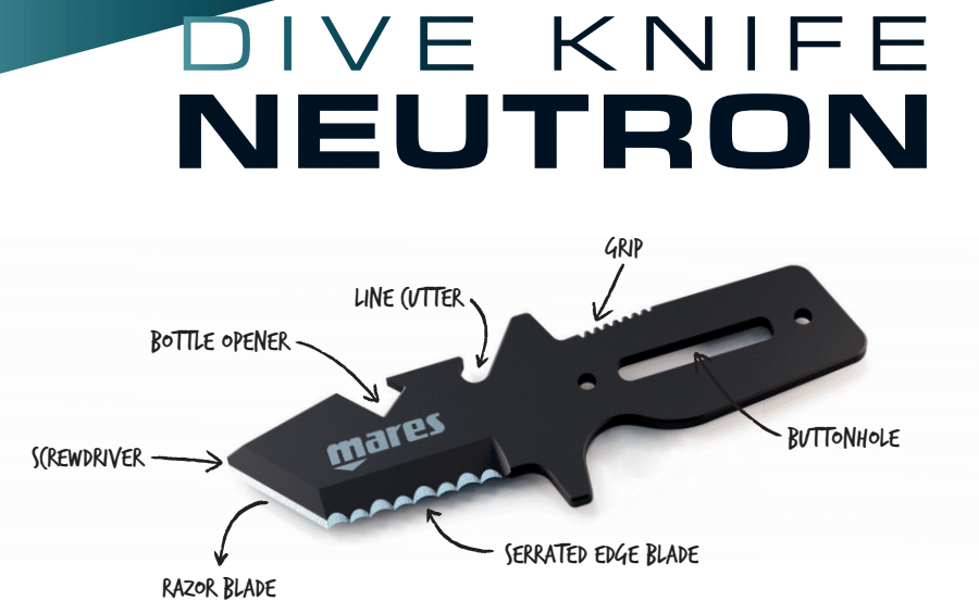 Η Mares σχεδίασε το μαχαίρι Neutron για να προσφέρει σε ένα κλασικό μαχαίρι καταδύσεων για μεγαλύτερη γκάμα χρήσεων. Οι διάφορες δυνατότητές του το καθιστούν κατάλληλο για χρήση ως μαχαίρι με ίσια λεπίδα, μαχαίρι με οδοντωτή λεπίδα, κόφτη για σχοινιά και κατσαβίδι.
