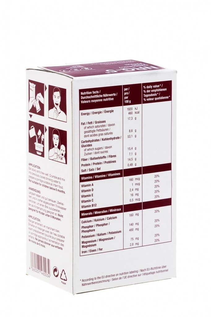 - Καθαρό βάρος 500g, 9600kj/ 2300 kcal η συσκευασία (Η συσκευασία περιλαμβάνει 9 μπάρες των 255 kcal).