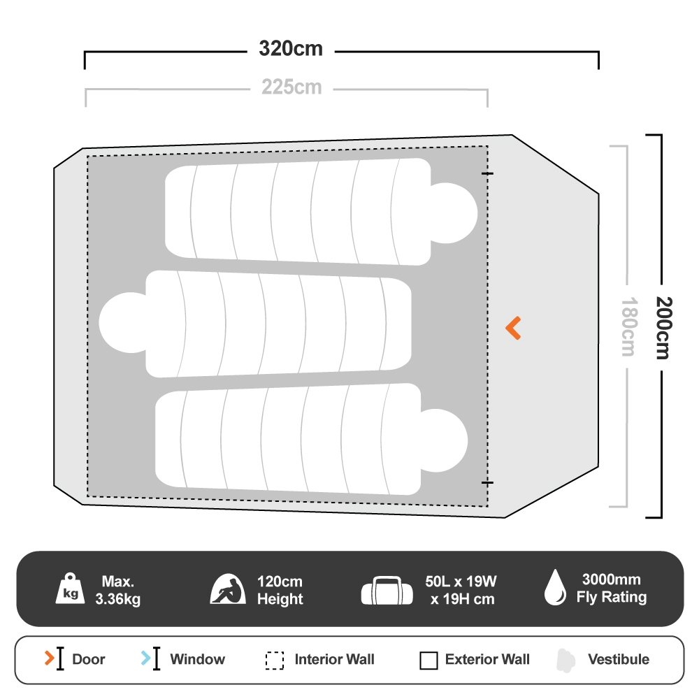 Αυτή η ελαφριά και συμπαγής ορειβατική σκηνή διαθέτει την τέλεια αναλογία εξαιρετικών προδιαγραφών, μεγάλης απόδοση και αξίας. Με βάρος μόλις 3,4 κιλά, είναι ιδανική για τις περιπέτειές με την παρέα σας. Η σκηνή Cradle 3P διαθέτει μπανέλες και πασαλάκια από κράμα αλουμινίου, καθώς και επαρκή αερισμό και αδιαβροχοποίηση ώστε να εξασφαλίσει απόδοση 4 εποχών. Η σχεδίαση που έχει της επιτρέπει να είναι επαρκής σε όλες τις καιρικές συνθήκες, διασφαλίζοντας ότι το εσωτερικό παραμένει πάντα στεγνό. Με τις γενναιόδωρες αναλογίες και τον μεγάλο μπροστινό προθάλαμο, αυτή η σκηνή πρέπει να ληφθεί σοβαρά υπόψιν από αυτόν που του αρέσουν οι περιπέτειες στα μονοπάτια.