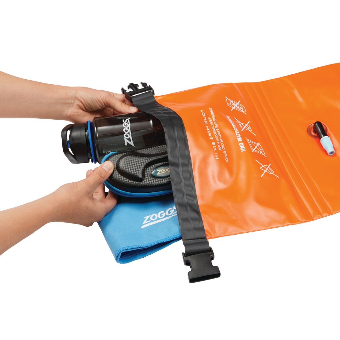 H φουσκωτή σημαδούρα της ZOGGS διατίθεται σε πορτοκαλί χρώμα. Περιέχει ζώνη μέσης που επιπλέει εμφανώς πίσω από τον κολυμβητή. Η σημαδούρα δεν επηρεάζει την απόδοση ή το κολύμπι. Η αδιάβροχη τσέπη καθιστά δυνατή τη μεταφορά προσωπικών αντικειμένων όταν κολυμπάτε.