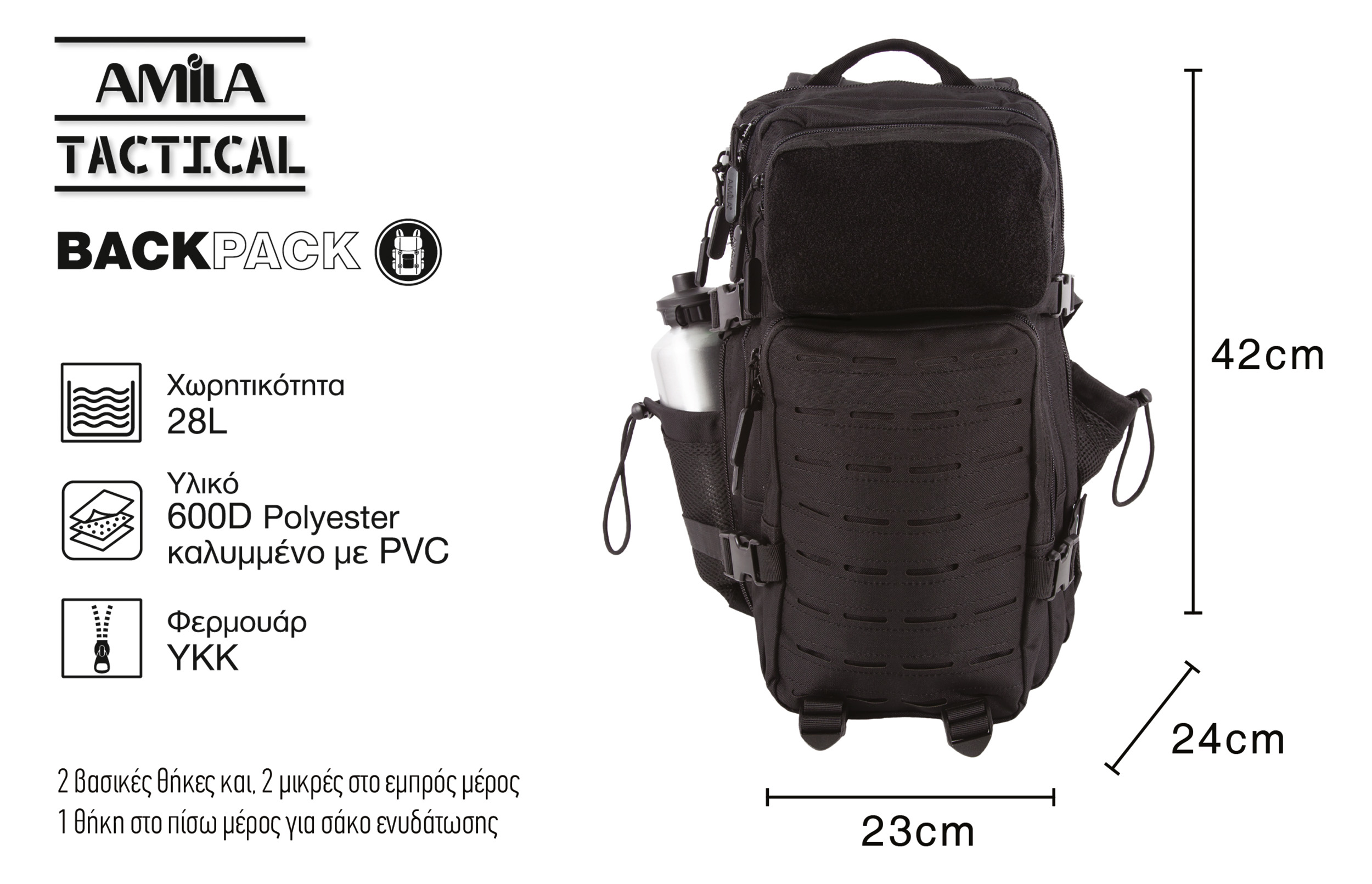Το AMILA TACTICAL BackPack Small διαθέτει αρκετές θήκες ικανές να χωρέσουν