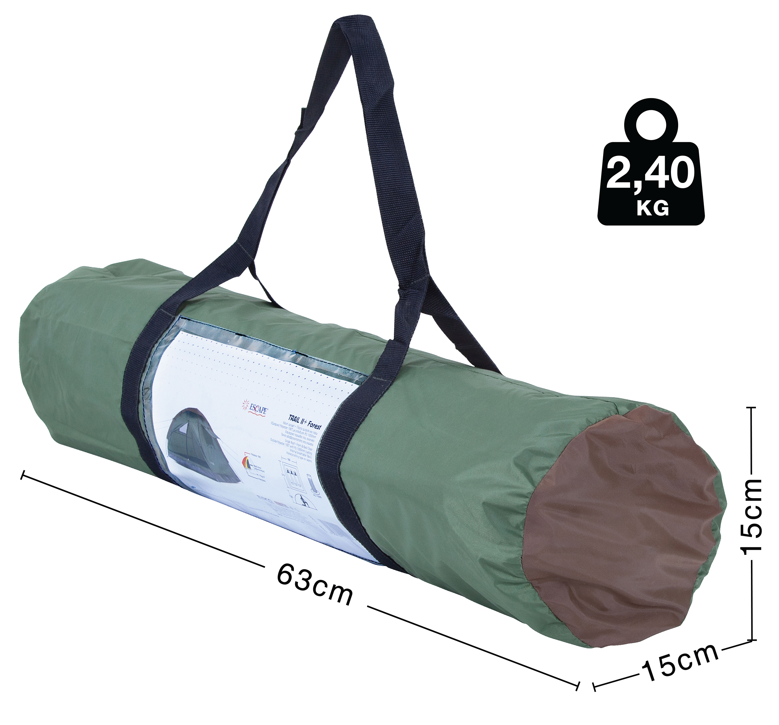 Η σκηνή Camping Trail από την Escape, είναι μια καλοκαιρινή κυρίως σκηνή. Απευθύνετε κυρίως στους νέους φίλους του camping και σε αυτούς που ψάχνουν μια οικονομική λύση, χωρίς να θυσιάζουν την ποιότητα. Το όνομα της προέρχεται από τα χρώματα της σκηνής, το πράσινο και το καφέ, χρώματα της φύσης και του δάσους, πετυχαίνοντας την “απόκρυψη” ανάμεσα στα δέντρα.Ποιότητα ΚατασκευήςΗ σκηνή Trail II+ από την Escape διαθέτει 2 σπαστές μπανέλες αντοχής κατασκευασμένες από Fiberglass 7,9 χιλιοστών. Το πάτωμα είναι κατασκευασμένο από PE 110g/m2 για αντοχή στις διάφορες επιφάνειες. Το εξωτερικό υλικό είναι από Polyester 190T, το οποίο θα προστατέψει από την υπερβολική ζέστη. Η σκηνή έχει αδιαβροχοποίηση PU1000.Παράθυρα με ΚουνουπιέρεςΓια έναν πιο δροσερό ύπνο ανοίξτε τα 2 παράθυρα, 40×40 εκατοστών, και την πόρτα. Αποφύγετε τα ενοχλητικά έντομα κλείνοντας τις κουνουπιέρες που θα βρείτε τόσο στα παράθυρα όσο και στην πόρτα.ΜέγεθοςΤο μέγεθος της σκηνής είναι 210×180 εκατοστά, με 130 εκατοστά μέγιστο ύψος. Μπορεί να φιλοξενήσει άνετα μέχρι 2 άτομα ενώ θα έχετε χώρο και για τα προσωπικά σας αντικείμενα.