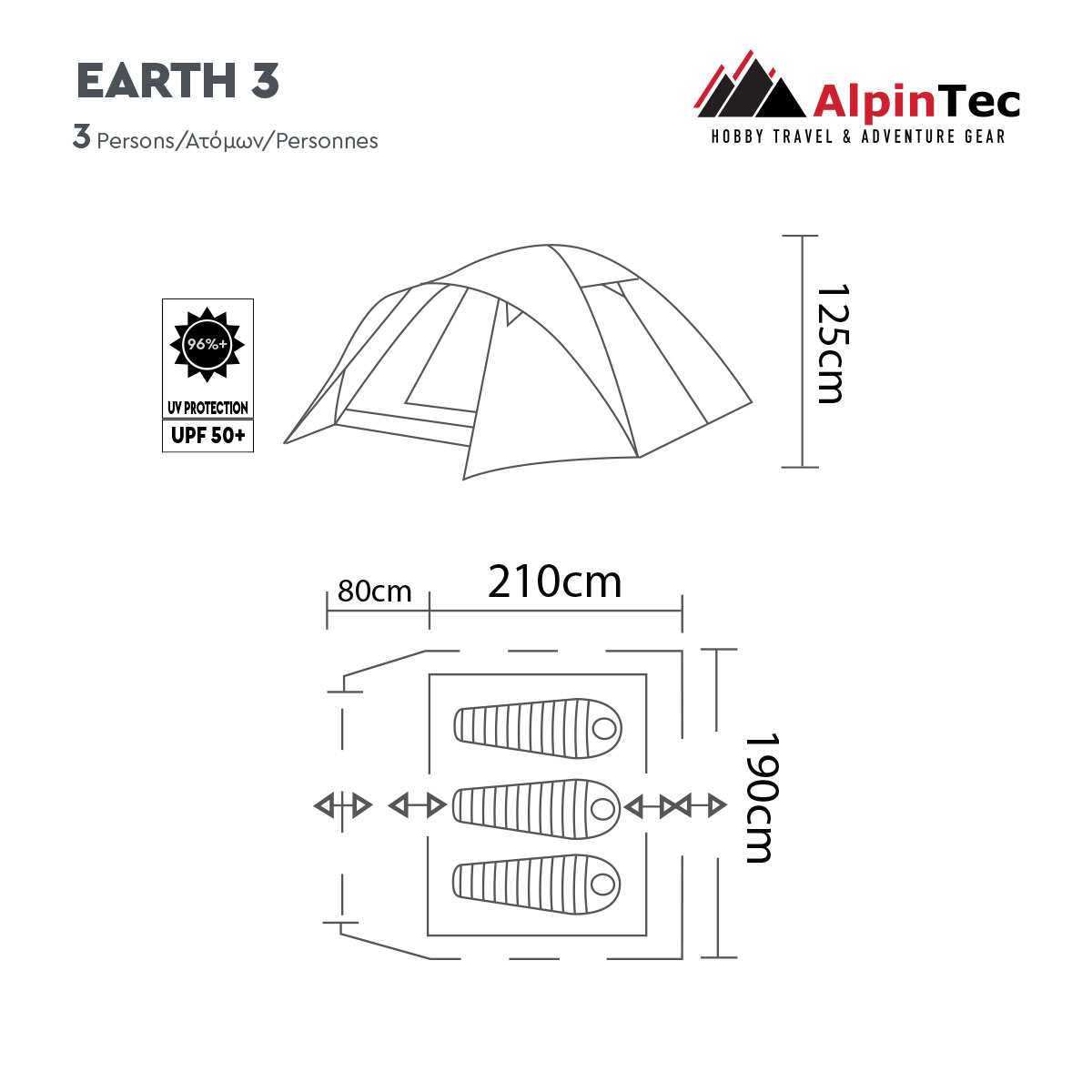 Ελαφριά σκηνή κάμπινγκ 3 εποχών και 3 ατόμων, ιδανική για εκδρομές με μεγάλους χώρους και αποθηκευτικό χώρο. Η σκηνή Earth 3 είναι κατασκευασμένη από διαπνέον ύφασμα με σίτα, αδιάβροχο εξωτερικό πανί έως 3000mm, ενώ το πάτωμα σκηνής είναι από polyethylene αδιάβροχο έως 10000mm. Τα υφάσματα είναι ειδικά επεξεργασμένα με επιβραδυντικό φλόγας και ο σκελετός είναι από μπανέλες Fiberglass. Διαθέτει δυο πόρτες με σίτα και υπάρχει εξαερισμός από όλες τις πλευρές της σκηνής για την καλύτερη κυκλοφορία του αέρα. Οι εσωτερικές τσέπες και ο επιπλέον αποθηκευτικός στην οροφή εξυπηρετούν τις ανάγκες σας, για αποθήκευση μικροαντικειμένων (είδη κάμπινγκ, γυαλιά ηλίου, φακό κεφαλής, κλπ). Στη συσκευασία περιλαμβάνεται σάκος μεταφοράς και αποθήκευσης, ανακλαστικά σχοινιά εγκατάστασης και πασαλάκια.