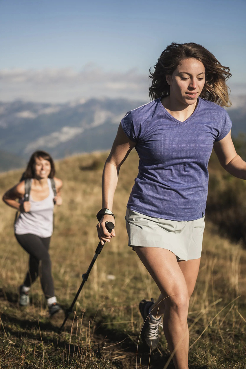 Θέλετε να δείχνετε θηλυκή στις πεζοπορικές σας εξορμήσεις στη φύση; Φορέστε το ACTIVE SKORT! Συνδυάζοντας ένα ελαστικό σορτς πεζοπορίας με μήκος έως το μέσο του μηρού, και ένα μπροστινό ύφασμα που διπλώνει για να δημιουργεί την εικόνα της φούστας, αυτό το σορτς είναι εξαιρετικά άνετο χάρη στο ελαστικό υλικό του και τη ρυθμιζόμενη ελαστική ζώνη της μέσης. Απομακρύνει γρήγορα την υγρασία όταν κάτω από τον ήλιο βάζετε τα δυνατά σας στα μονοπάτια, και επίσης διαθέτει και δύο τσέπες για τα χέρια.