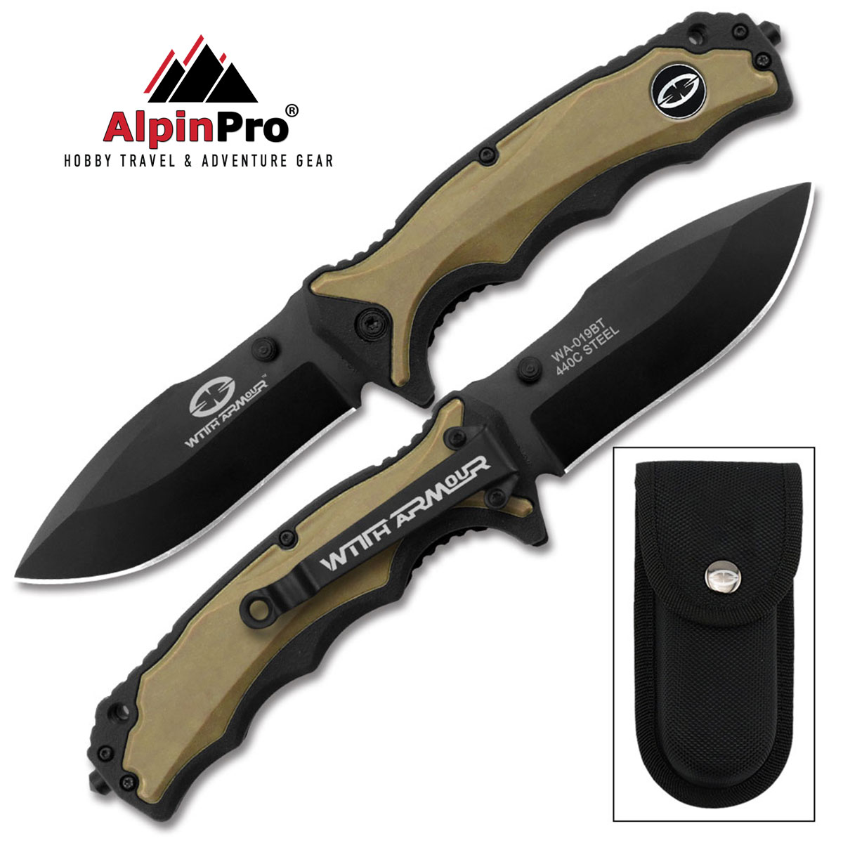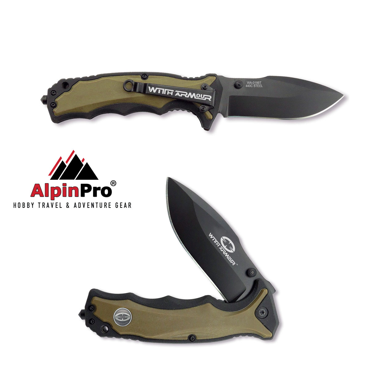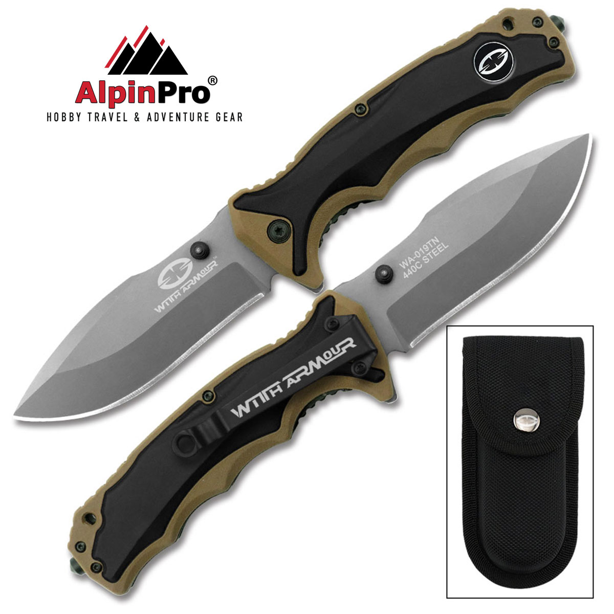 Αυτός ο σουγιάς της WithArmour είναι με μαύρο ανοδιωμένο χάλυβα 440. Η λεία λεπίδα κοπής διαθέτει ένα διπλό κουμπί και έναν πείρο για εύκολο και γρήγορο άνοιγμα με το ένα χέρι. Η λαβή του ανατομικού σχήματος, κατασκευασμένη από ίνες από καουτσούκ και νάιλον, είναι ιδανικά σχεδιασμένη για ασφαλές κράτημα και έχει στο τέλος του θραύση κρυστάλλων Είναι εξοπλισμένο με κλιπ ζώνης και τρύπα για να περαστεί κορδόνι . Κλείδωμα συστήματος Liner-Lock