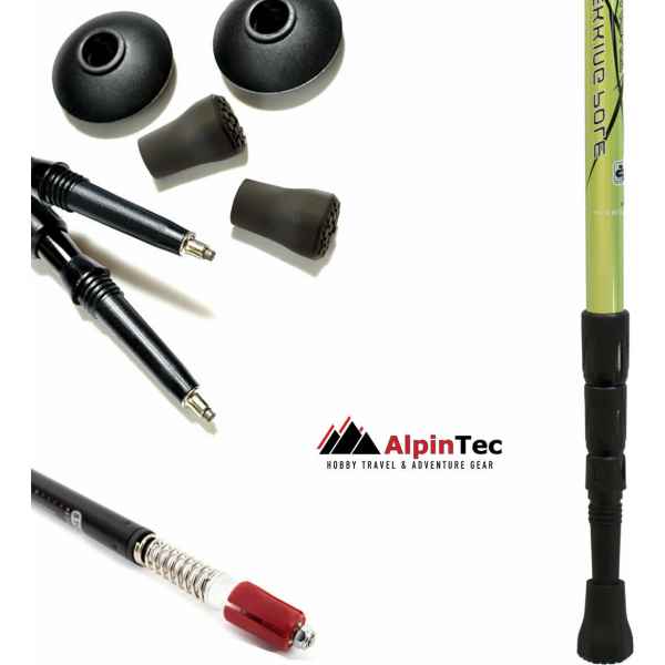 Τα AlpinTec είναι ποιοτικά μπατον με ισχυρούς μηχανισμούς που ξεχωρίζουν για την ευκολία στην χρήση και την ποιότητα των υλικών τους. Η ρύθμιση του επιθυμητού μήκους γίνεται εύκολα και επιλέγετε σε anti-shock ή χωρίς στο τέλος του σπειρώματος.