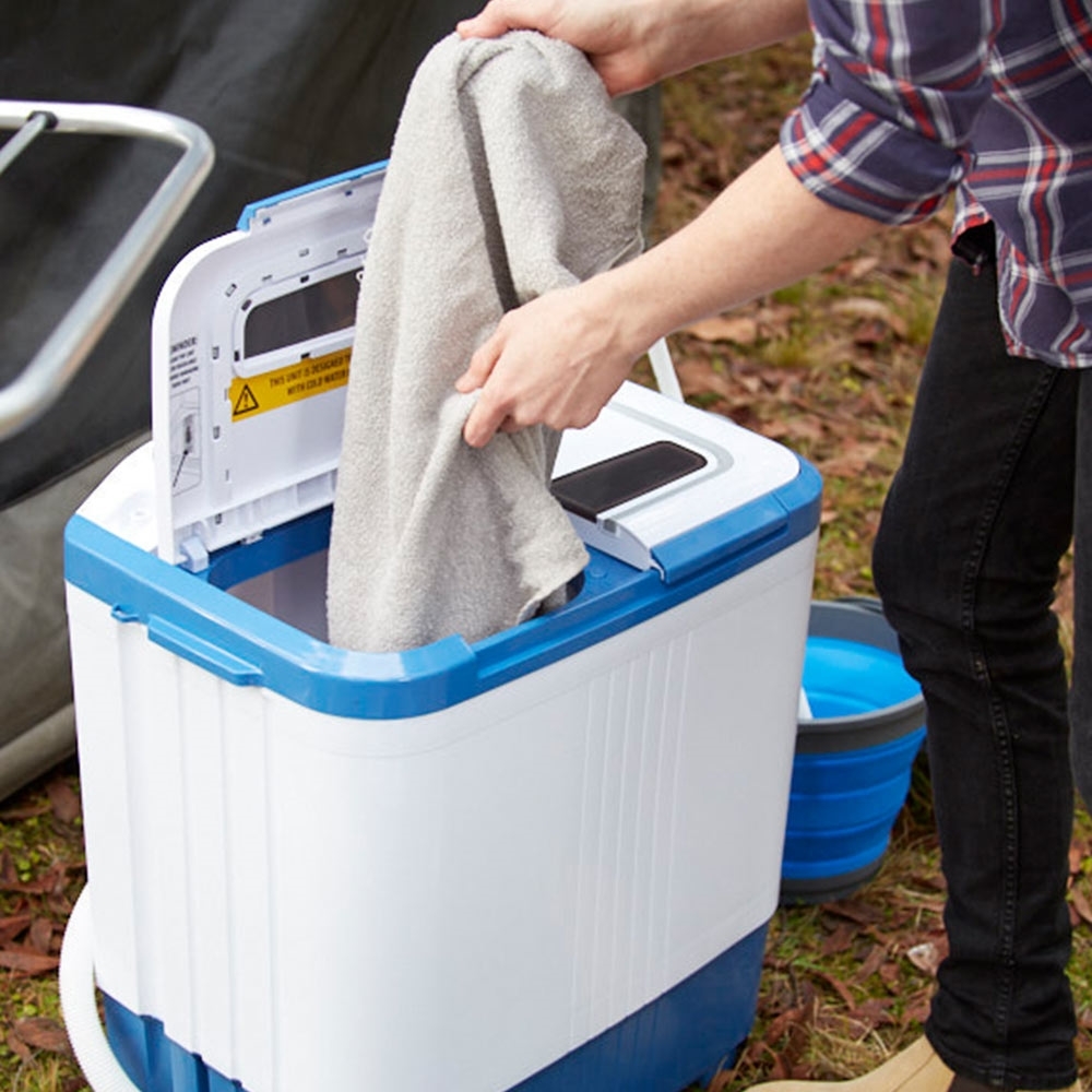 Το φορητό πλυντήριο Companion TWIN TUB με χωρητικότητα πλύσης 2 κιλών, είναι συμπαγές και μοντέρνο, και διαθέτει δύο κάδους για πλύσιμο και στήψιμο των ρούχων. Απλό στη χρήση, φέρνει εις πέρας όλη τη σκληρή δουλειά του πλυσίματος των ρούχων σας στο κάμπινγκ, και το μόνο που απομένει για εσάς είναι απλώς να κρεμάσετε τα ρούχα σας. Το πλυντήριο Twin Tub διαθέτει χρονοδιακόπτες κύκλου πλύσης και στυψίματος και τροφοδοτείτε με ρεύμα 240V ή 12V από το αυτοκίνητο. Διαθέτει δύο προγράμματα πλύσης – κανονικό και απαλό, αναδευτήρα στο κάτω μέρος και αποστράγγιση μόλις τελειώσει η πλύση. Είναι κατασκευασμένο από ισχυρό και ανθεκτικό πλαστικό ABS και διαθέτει ισχυρές ενσωματωμένες λαβές για εύκολη μετακίνηση.Χαρακτηριστικά: Ικανότητα πλύσης και στυψίματος 2 κιλά Κύκλος πλύσης και στυψίματος με χρονοδιακόπτη Δύο προγράμματα πλύσης – κανονικό και απαλό Αθόρυβη λειτουργία Λειτουργία 240V AC ή μπορεί να χρησιμοποιηθεί με μετατροπέα ισχύος DC σε AC Ισχυρό περίβλημα ABS Διαστάσεις προϊόντος: 56×36,2×65 cm Βάρος: 12 kg Σωλήνας αποστράγγισης: 460mm Ονομαστική τάση: 240V AC/50Hz Ονομαστική ισχύς: 240W πλύση / 120W στύψιμο Βάρος αποστολής 14.2kg