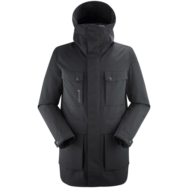 Αποτελείται από αδιάβροχη ζακέτα μεσαίου μήκους μηρού συμπληρωμένη με τέσσερις μεγάλες τσέπες με πτερύγιο και ενσωματωμένη κουκούλα με προστατευτικό κολάρο, σε συνδυασμό με ένα αφαιρούμενο φουσκωτό μπουφάν, μονωμένο με ανακυκλωμένο κάλυμμα REPREVE®.