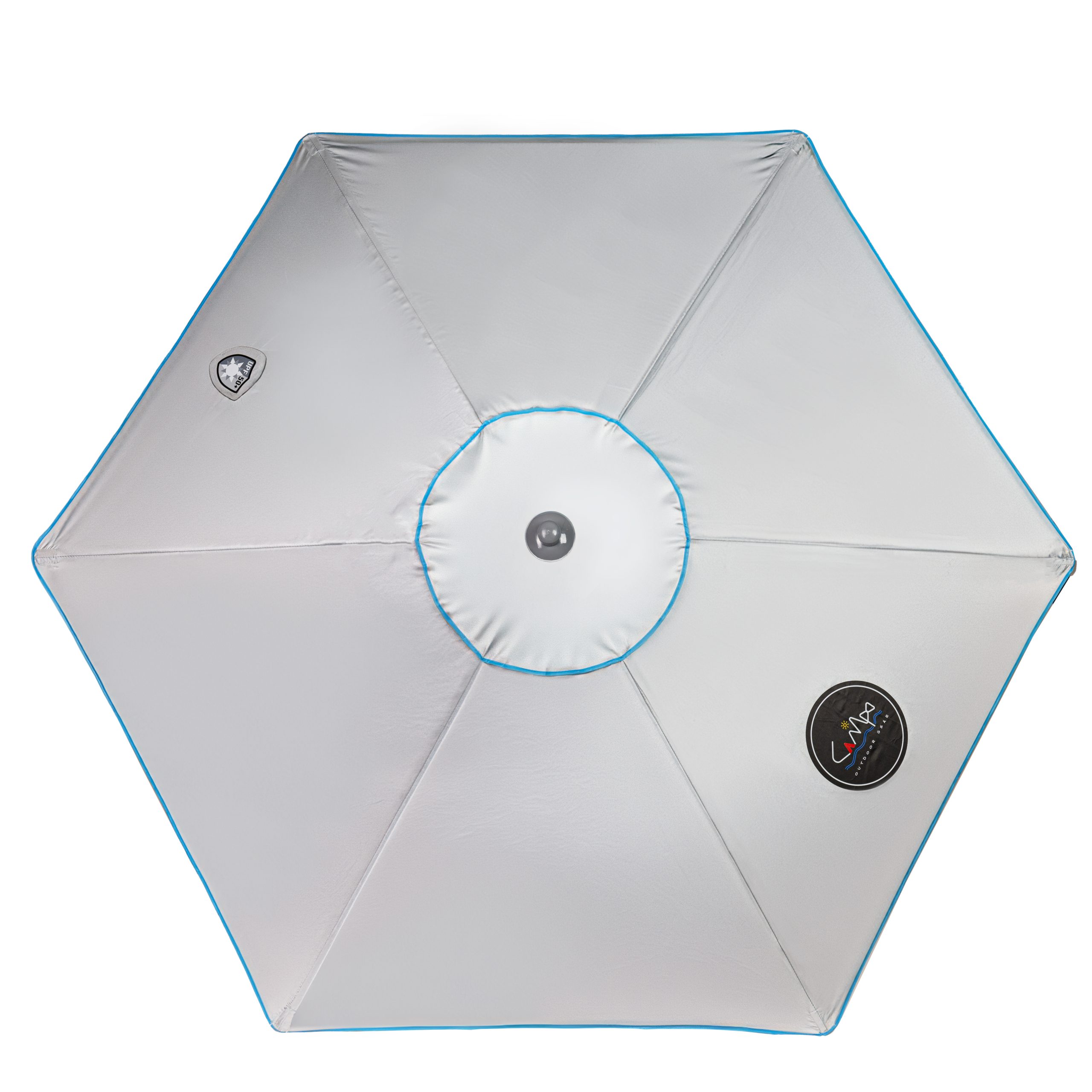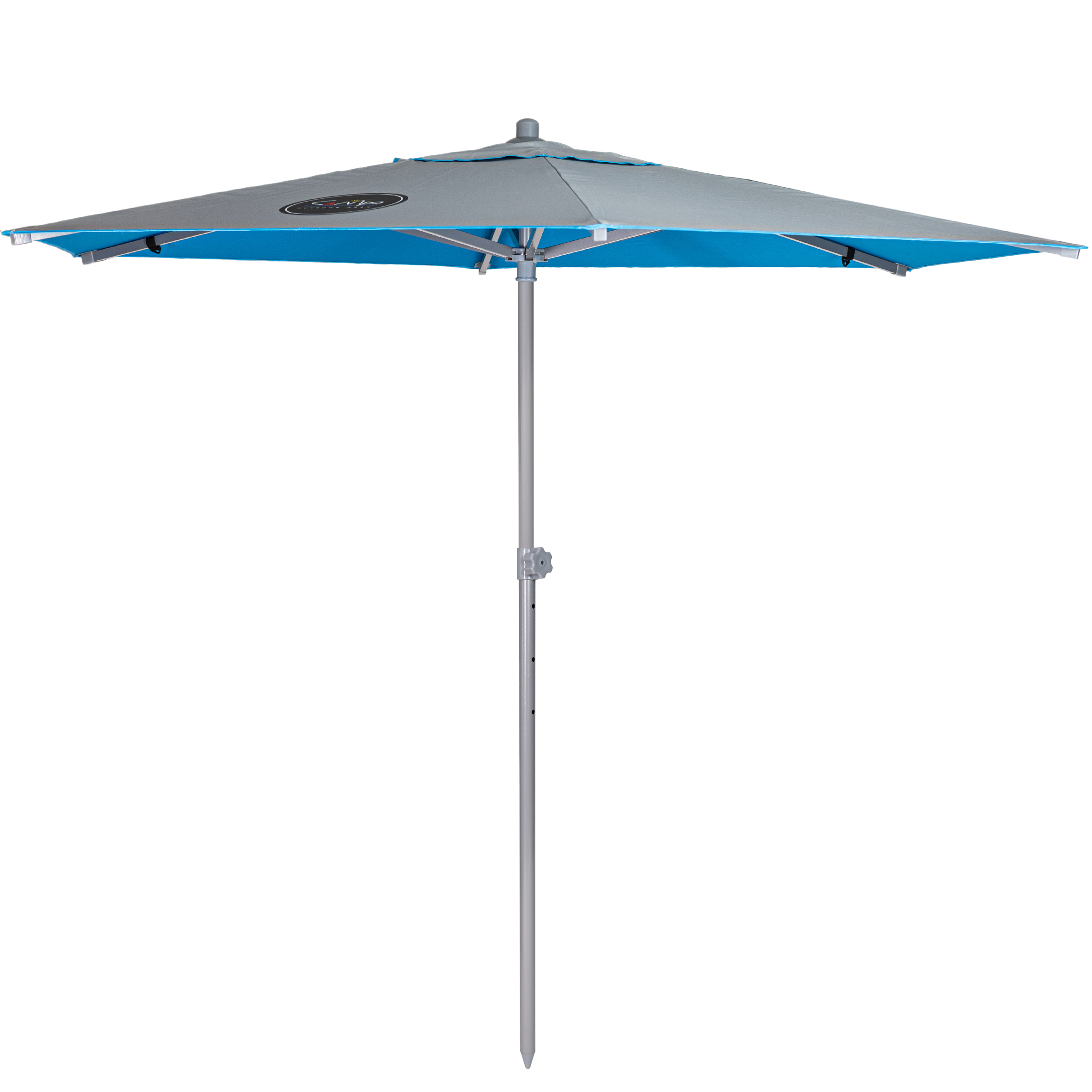 - Το ύφασμα της ομπρέλας είναι κατασκευασμένο από Polyester PU 180gr/ m2 silver coating, ασημί επίστρωση εξωτερικά. H επίστρωση PU προσδίδει στο ύφασμα αδιαβροχοποίηση, επιπλέον αντίσταση στην θερμότητα και το φως, μεγάλο βαθμό αποχρωμάτισης καθώς και ανθεκτικότητα, δίνοντάς του τη δυνατότητα να αντέχει σε βαρύτερες ριπές ανέμου κλπ.